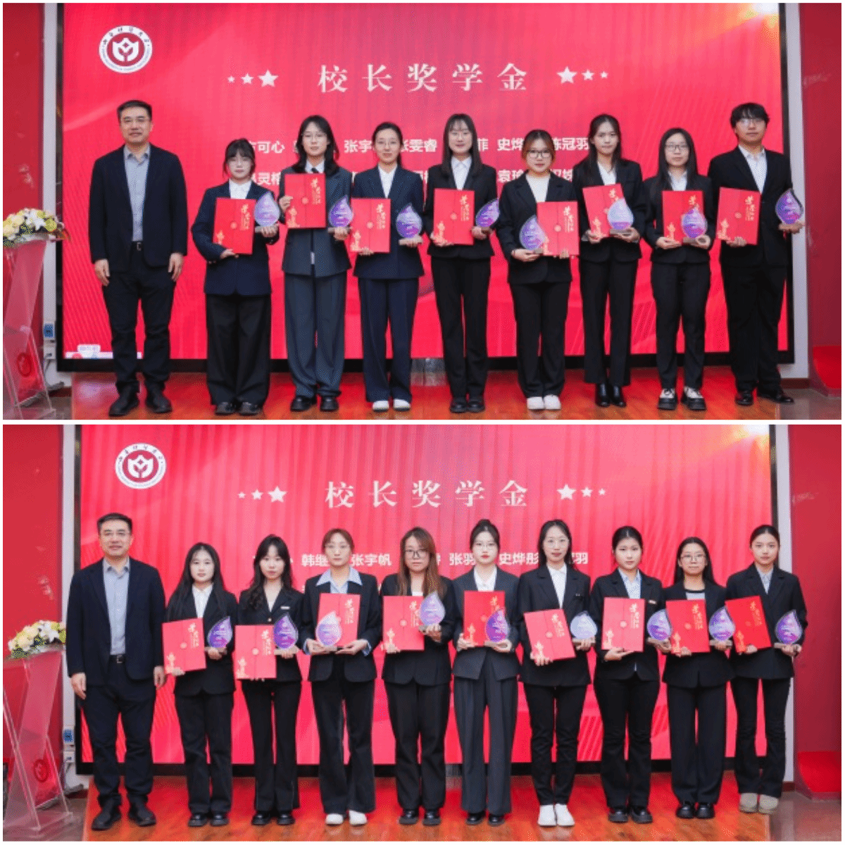 活动在庄重而热烈的氛围中拉开帷幕。田祥宇校长为“三好学生标兵”荣誉称号获得者、校长奖学金获得者颁发了奖杯与荣誉证书,并向他们表示祝贺与勉励。现场掌声不断,洋溢着对优秀学子的认可与期待。
