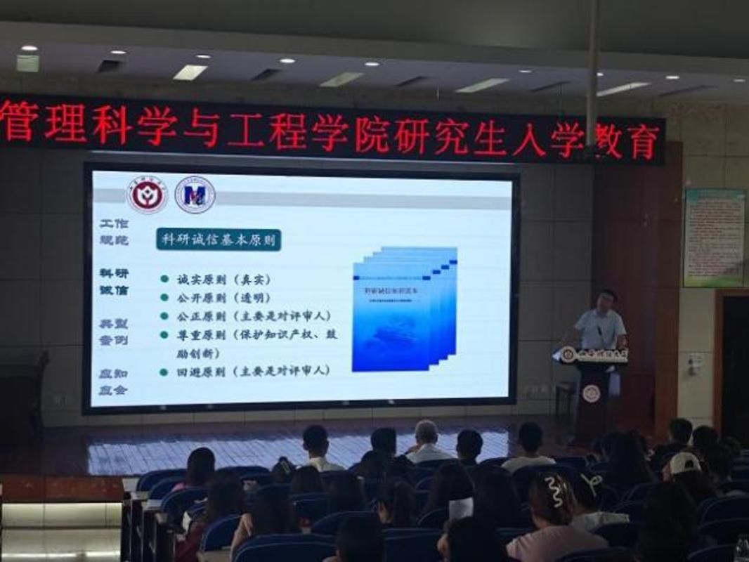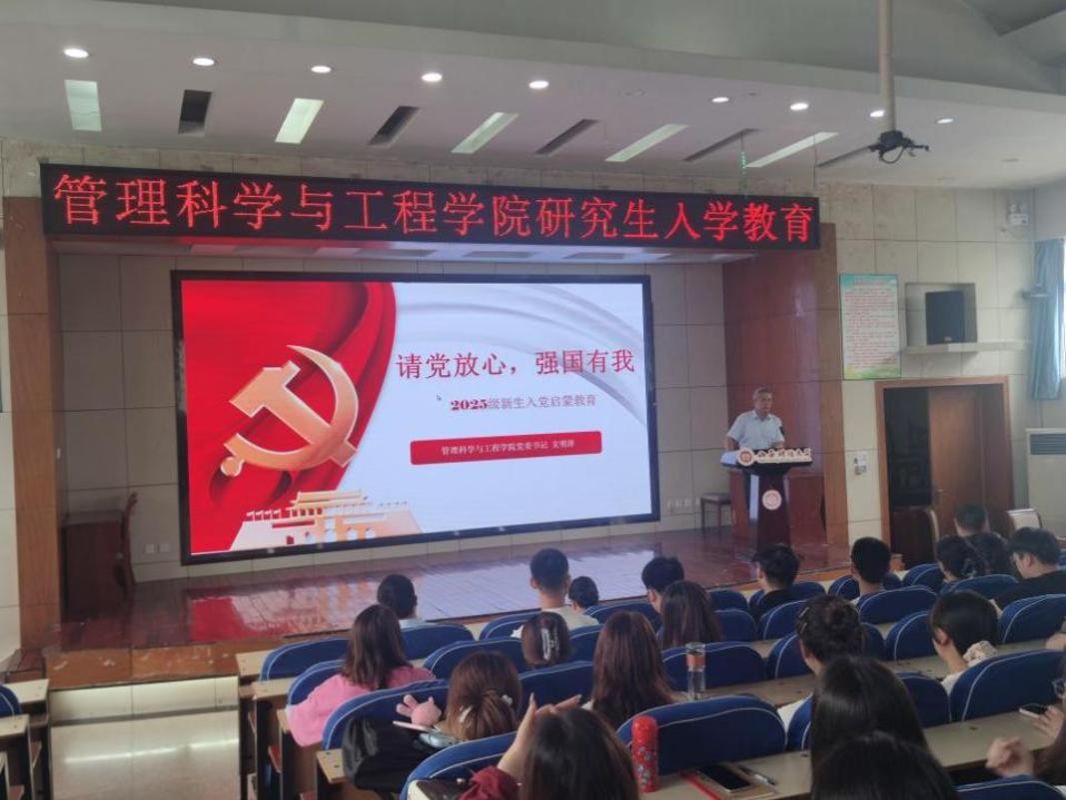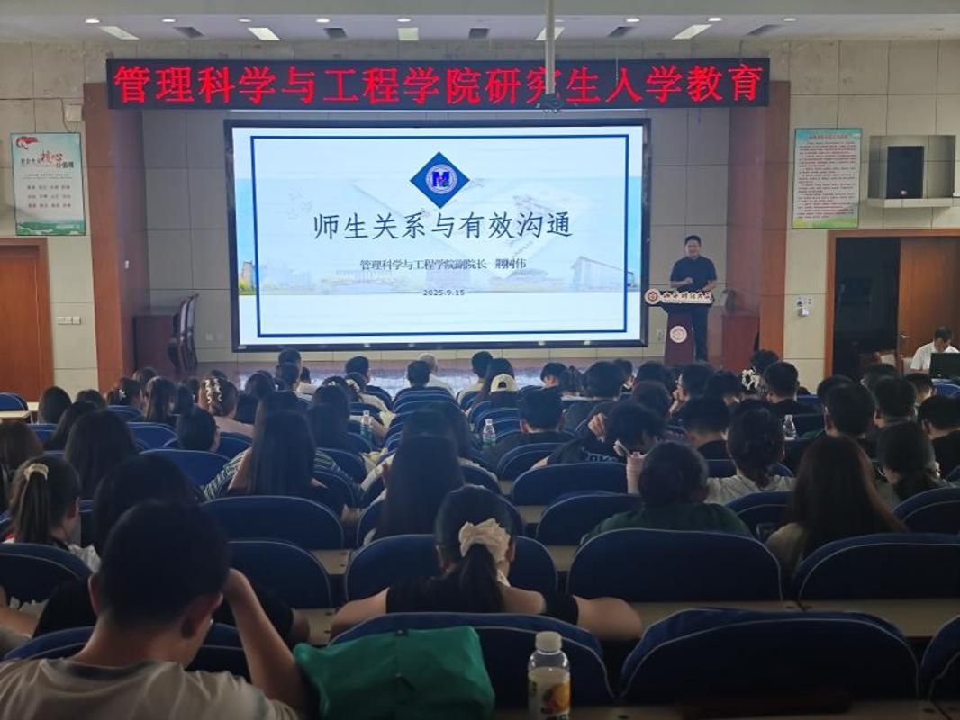 在纪念中国人民抗日战争暨世界反法西斯战争胜利80周年和全面推进中国式现代化建设的关键节点之际,管理科学与工程学院于9月14日至9月20日,以“以史铸魂、智启未来”为主题,对2025级研究生新生进行入学教育。内容涵盖:入党启蒙、校史院情、学术诚信、心理健康、安全教育、专业前沿导论和职业初体验等多个环节,助力研究生新生开启“研途”新征程。