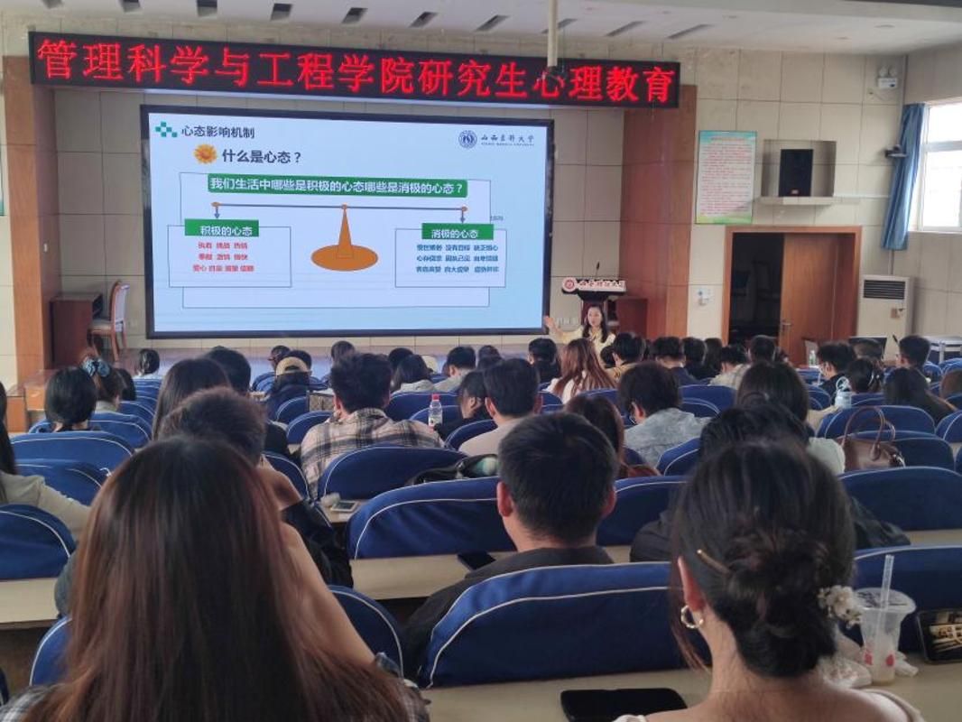 为进一步加强学院研究生心理健康教育,关注其心理状态,提升其心理素养,健康快乐地步入科研新生活。9月18日上午,学院组织开展了“从自控到合作”之研究生心理健康与压力管理的讲座。山西医科大学郭翠梅老师主讲,强调个人对情绪的认识和理解对于个人成长的重要性;鼓励大家学会表达自己的情绪,强化自我心理管理能力,鼓励研究生同学在学习、科研和生活中遇到困难时,要积极主动寻求专业心理辅导和咨询服务。