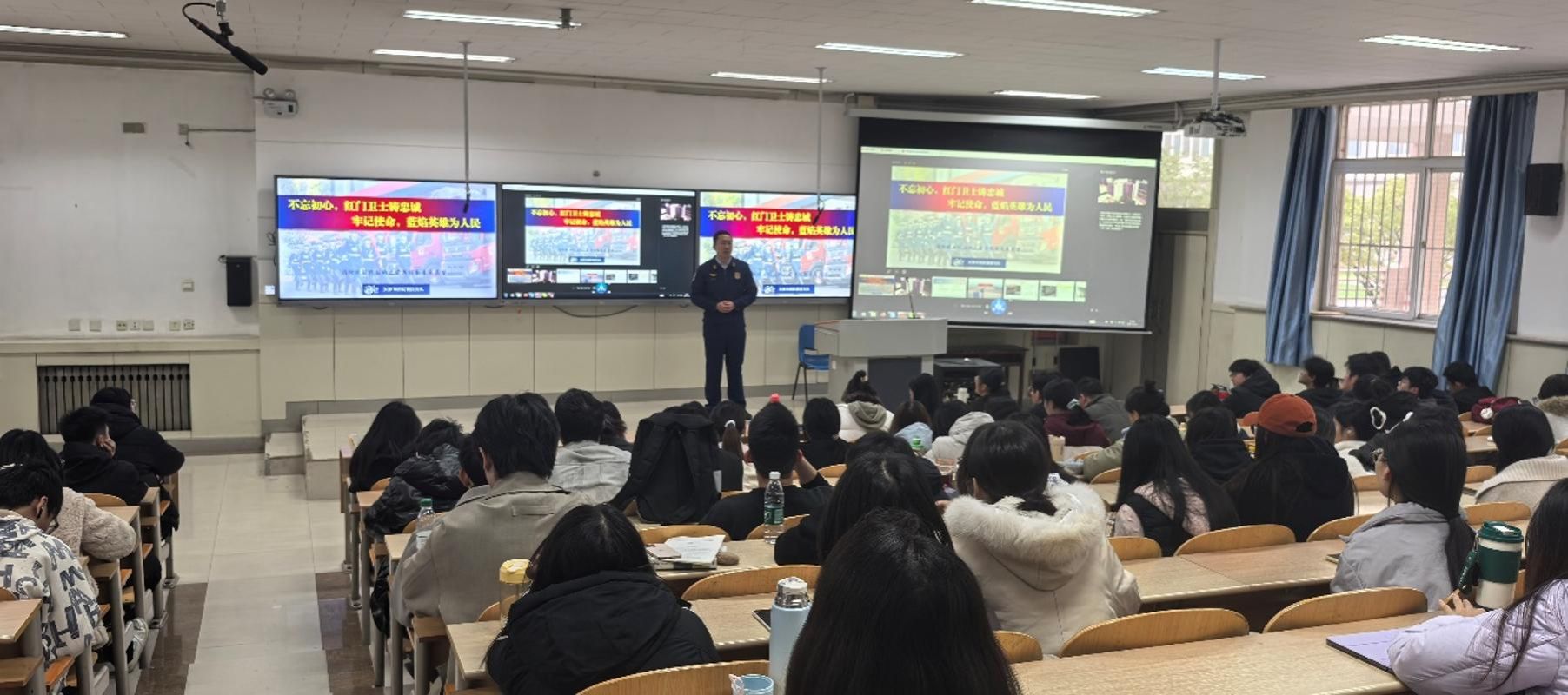 王枭翔系统梳理了我国消防行业的发展脉络,回顾了从传统消防到现代应急管理体系的重要转变。他结合历史重大事件与政策变革,系统介绍了消防体制的演进历程。在第二部分内容中,王枭翔聚焦太原市消防救援支队的实际工作,生动展现了消防员在各类灾害救援中的英勇表现。无论是火灾扑救、水灾抢险,还是各类社会救助任务,消防员始终冲锋在前,以专业能力和无畏精神守护城市安全。最后,王枭翔围绕“你想成为怎样一个人”这一命题,与同学们展开深入交流。他详细介绍了国家综合性消防救援队伍的招录政策、职业发展路径以及成为一名合格消防员所需具备的素质与能力。他鼓励大学生积极规划职业生涯,树立远大理想,将个人成长与国家需要紧密结合,主动到祖国和人民最需要的地方去建功立业。