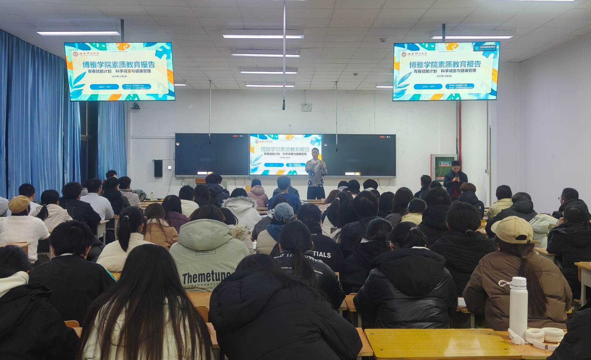 为配合首届“寻找博雅减重之星”活动开展,持续点燃同学们健身热情,12月2日晚,博雅学院在迎泽校区图书馆举办了第252504期素质教育报告,报告主题是“青春赋能计划:科学减重与健康管理”。邀请山西中体健身总经理王宁主讲,首届“寻找博雅减重之星”活动报名学生以及其他大一同学160余人参加,报告由博雅学院副院长高进主持。