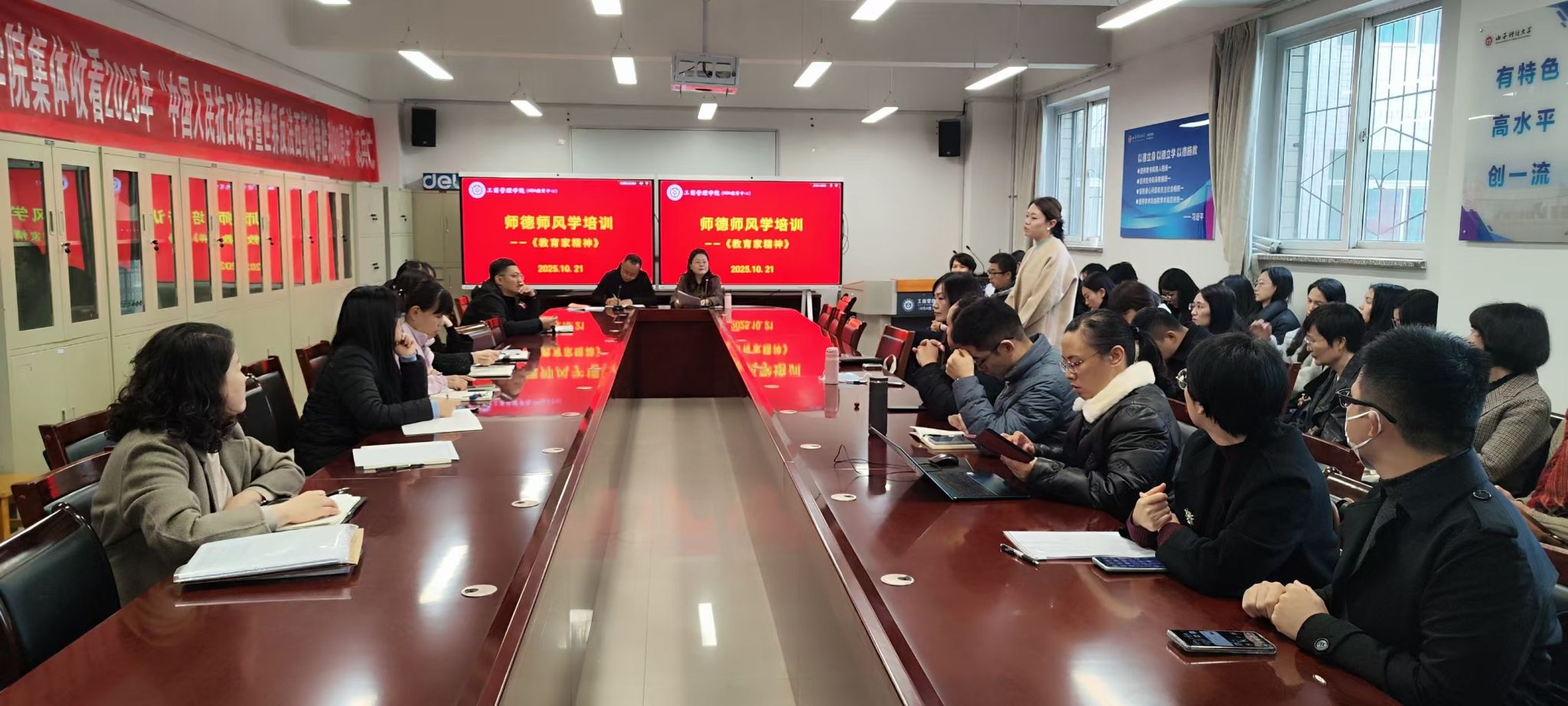 教学革新:名师领航,激发教学最大潜能。为提升教学质量,激发教学潜能,学院采取多项举措。启动教师教学创新大赛,以赛促教,激发教师教学热情,推动教学方法创新;组织集体备课研讨,齐永智副院长等老师分享备课心得与教学经验,为教师提供宝贵参考;参与专业建设研讨,郭淑芬院长汇报学院专业建设与课程改革成效,贡献工商智慧;参加卓越人才培养实验班进展汇报会,薛继东副院长汇报实验班招生、培养及成果,展示学院卓越人才培养探索;教师经验分享,周莉清、赵皓宇、郭金花、陈蕴琦、田光迪等优秀教师在学院例会上分享学科竞赛获奖、教学心得及科学研究成果,为教师提供学习借鉴;编写小学期实践能力培养活动成果展示图,生动呈现学生实践成长与收获;完成2024-2025学年本科教学质量报告,全面总结分析教学质量,为未来提升提供依据。