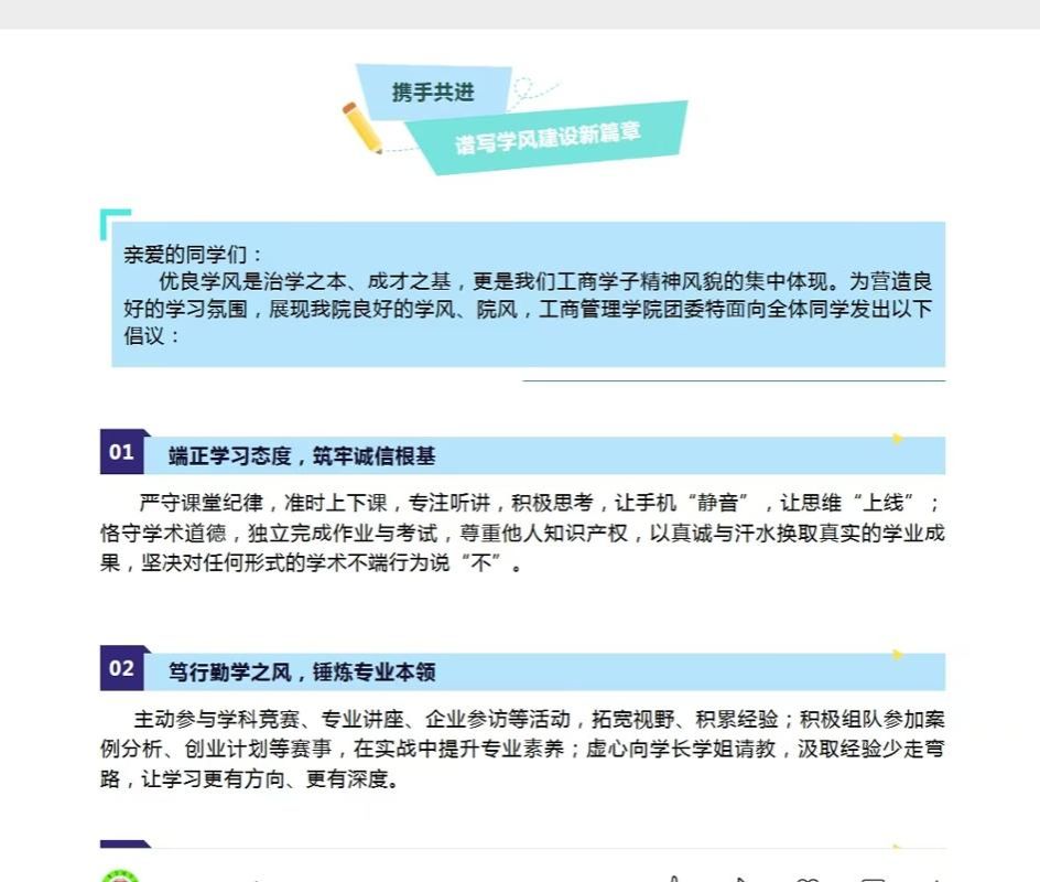 近日,工商管理学院以“深耕学风建设,共筑清朗学境”为主题,精心策划并成功举办了学风建设月系列活动,全力营造积极向上、严谨笃学的良好学习氛围,为学院的长远发展注入蓬勃动力。