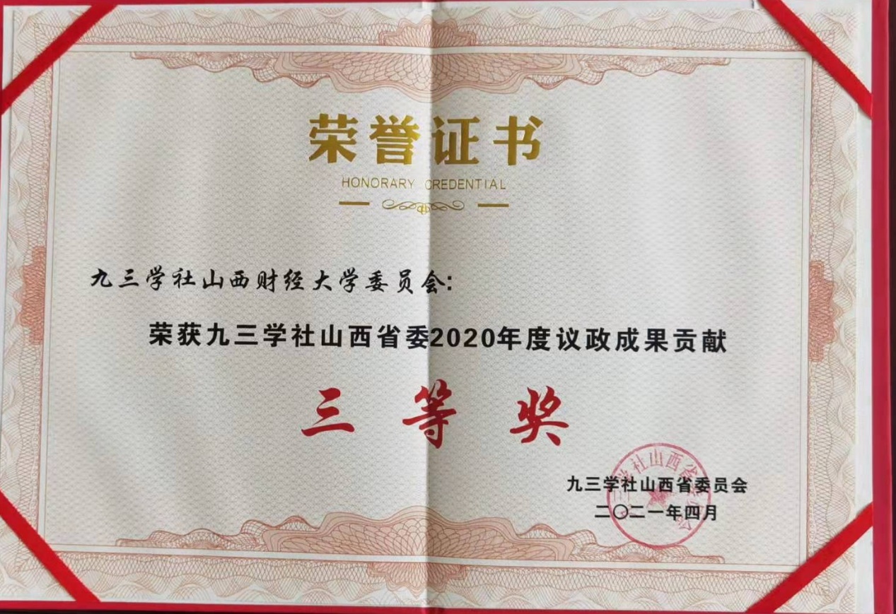 近年来,九三学社山西财经大学委员会在学校党委的关怀、指导和支持下,努力加强自身建设,积极议政建言,认真撰写提案,不少提案被全国政协和山西省政协采纳,连续多年获得社省委表彰,参政议政成绩斐然,为国家经济建设、山西转型发展和我校教育事业发展做出了积极贡献。(九三学社山西财经大学委员会供稿)