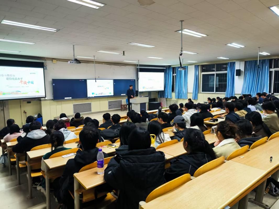 11月6日,党委常委、副校长李向阳以“聚焦更高水平平安中国”为题,在立信102阶教给2022级地理信息科学、人文地理与城乡规划、自然资源与环境等三个专业137名本科生讲授了一场生动深刻的思想政治理论课。