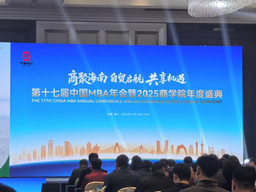 12月19日至21日,由海南大学主办的第十七届中国MBA年会暨2025商学院年度盛典在海南海口举办。此次年会以“商聚海南、自贸启航、共享机遇”为主题,来自国内外200余所高校的积极参与,1100余名商学院院长、书记、MBA学生及校友代表齐聚一堂,共襄盛举。工商管理学院党委副书记周志刚、王治老师带领在校MBA学生代表和校友代表一同参加会议。工商管理学院荣获第十七届中国MBA“十佳创新学院”。