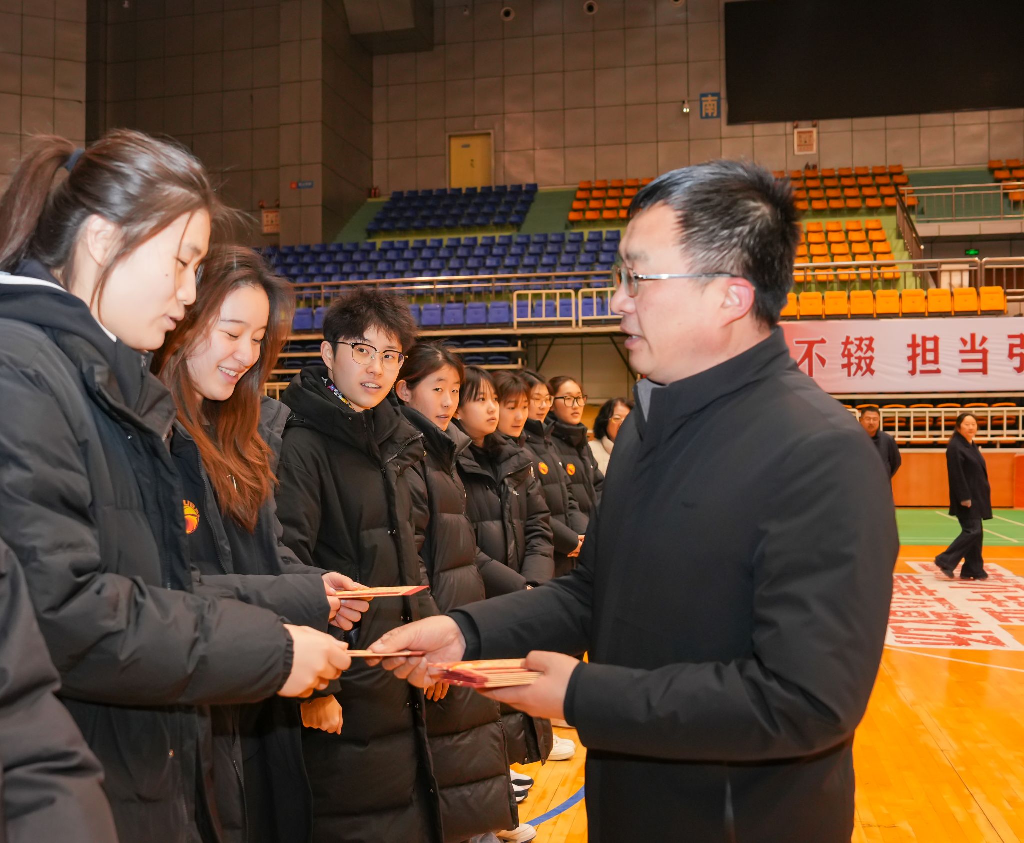 手捧慰问品,耳闻暖心话,留校学生们笑容映在脸庞,感动荡在心间。大家纷纷表示,虽然今年寒假不能回家,但学校的关怀让自己感受到了浓厚的年味和家的温暖。一定牢记学校的嘱托,珍惜时光、努力学习、刻苦训练,以优异成绩回报学校的培养与关爱。