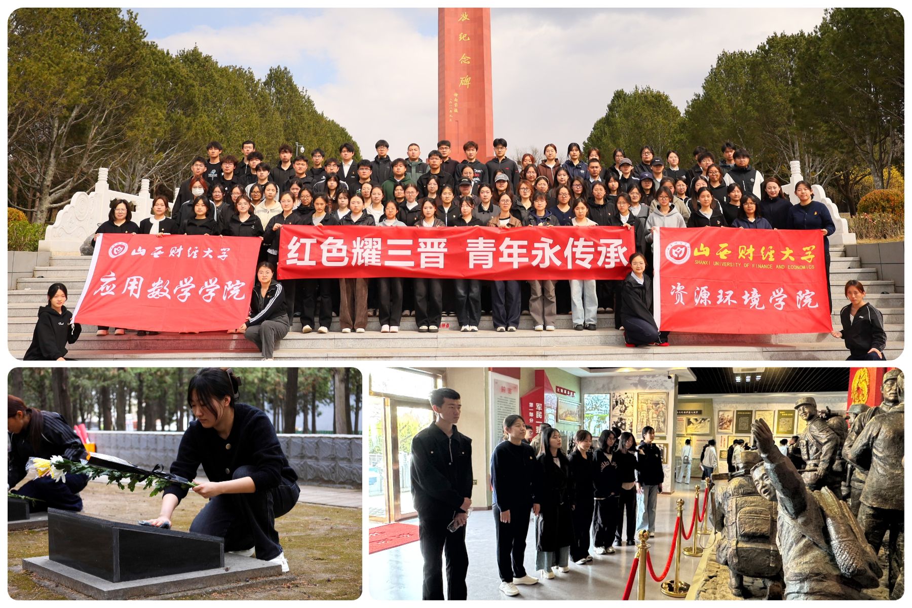 体育学院、统计学院、金融学院、会计学院、文化旅游与新闻艺术学院、中德学院、资源环境学院与应用数学学院等纷纷组织师生走进太原牛驼寨烈士陵园(太原解放纪念馆)。在苍松翠柏掩映下的革命烈士纪念碑前,师生们整齐列队,肃立默哀,敬献花篮与白菊,深切缅怀为解放太原、民族独立而英勇献身的革命先烈。在活动中,团员青年们重温入团誓词,在墓区擦拭墓碑,在与先辈的“跨时空对话”中感悟初心。