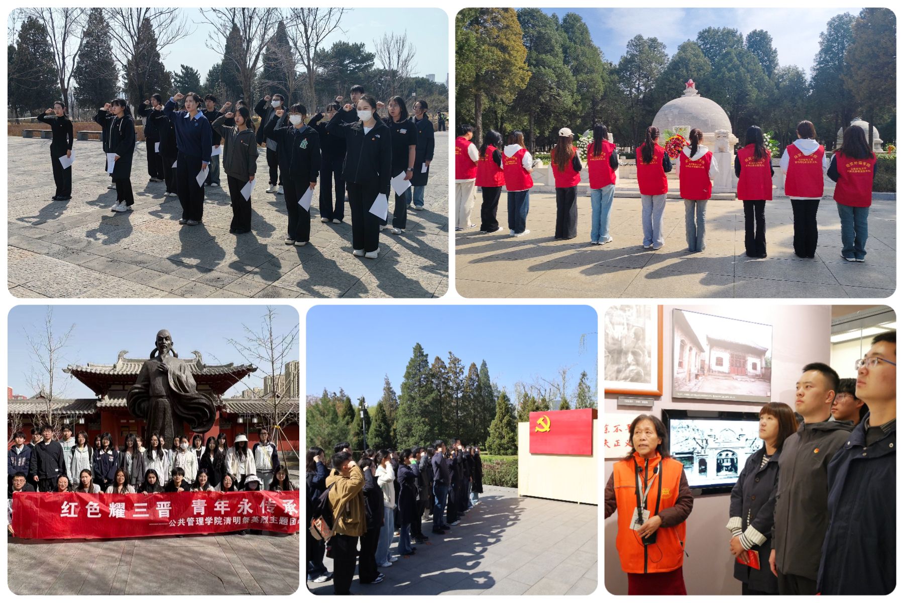 公共管理学院、法学院、经贸外语学院在太原双塔革命烈士陵园开展了主题活动。公共管理学院学子在解放太原革命烈士纪念碑前默哀、清理杂草,以实际行动守护英烈安息之地,并前往狄仁杰文化公园,将红色教育与清廉文化学习相结合。法学院团员亲手制作纸花敬献英烈,深情朗诵《清明》,并在纪念碑前重温入团誓词。