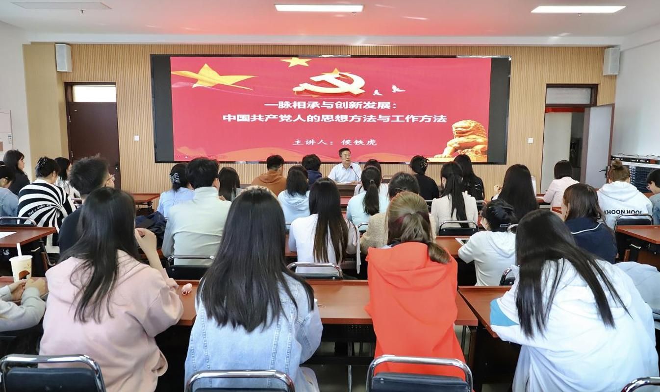 思想方法和工作方法是我们党宝贵的精神财富和克敌制胜的重要法宝。对于青年学生来说,学习和掌握这些科学方法是时代赋予的“必修课”。马克思主义学院邀请忻州师范学院党委常委、副校长侯铁虎作了题为“一脉相承与创新发展:中国共产党人的思想方法和工作方法”的专题讲座。他系统阐述了周恩来、刘少奇、朱德等老一辈革命家的思想方法和工作方法,希望同学以“调查研究”为起点,以“矛盾分析”为核心工具,以“人民立场”为价值尺度,以“与时俱进”的态度紧跟学术前沿,自觉传承党的理论财富,提升分析问题、解决问题的能力。