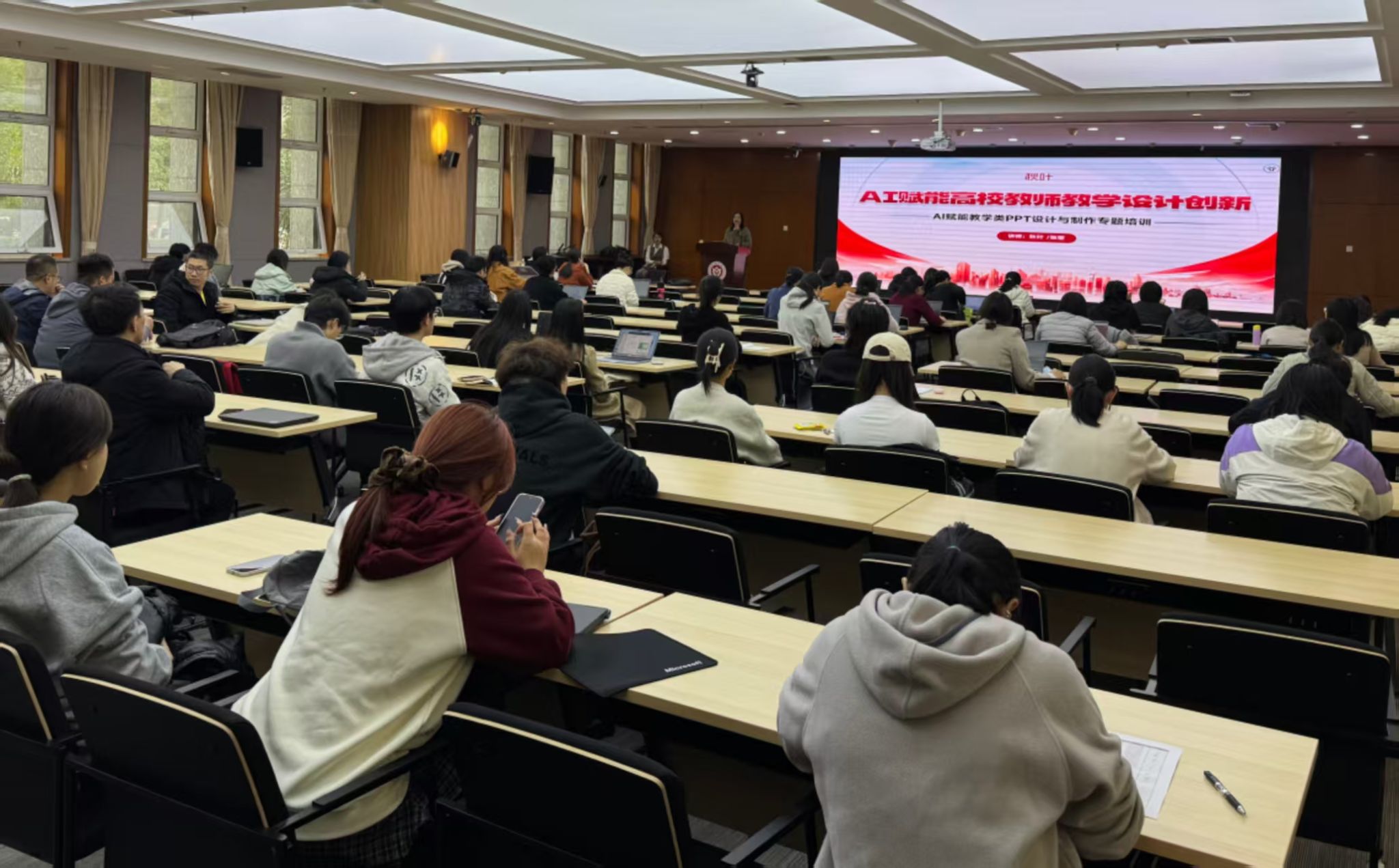 10月22日下午在图书馆东馆一楼报告厅,人事部(教师发展中心)举办AI赋能高校教师教学设计创新《PPT设计与制作》专题讲座。本次讲座由秋叶团队金牌讲师张莹主讲,70多名近三年入职教师参加。
