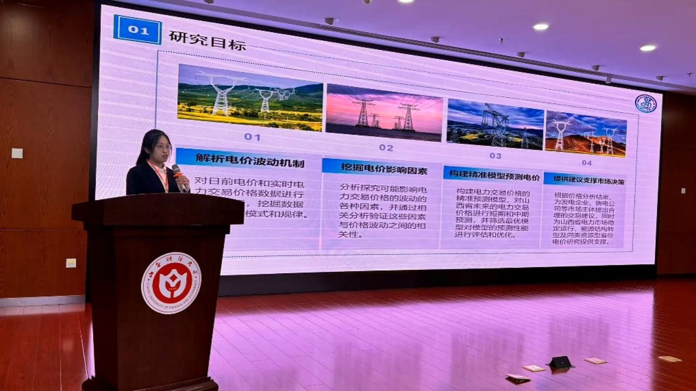 竞赛活动中,24支参赛队伍围绕电力交易价格波动预测平台搭建、山西居民消费价格指数智能报告自动生成系统、数据驱动下卷烟吸阻工艺参数筛选与质量预测、土壤湿度预测与农业灌溉系统规划、基于时序分析与网络模型的蔬菜价格传导机制研究与应用等题目进行了精彩展示和答辩。参赛选手们精心准备,用创意和实力展示了各自的研究成果和专业技能,赢得了现场观众和评委的一致好评。在答辩环节中,评委老师围绕赛题与作品的匹配度、模型构建方法、平台环境配置、计算工具选择以及企业应用推广等关键维度展开提问,并给出了专业建议。企业代表在点评时指出,参赛选手展现了出色的创新思维,部分优秀案例值得企业深入思考,但同时也提醒要重点关注平台运营成本、商业变现能力和行业发展趋势等实际问题,建议选手们在后续研究中加强实地调研,以提升研究成果的实用性和可行性。