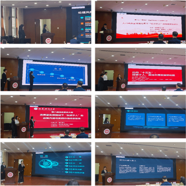 巅峰对决亮成果,知行合一显真章。4月12日下午,全国财经高校信息素养大赛山西财经大学初赛展示汇报环节在图书馆东楼报告厅拉开帷幕。比赛分研究生组与本科生组开展组内角逐,各参赛队伍按抽签顺序依次登台,每支队伍汇报时长严格限定在6-8分钟。此环节重点考查选手的学术问题剖析能力、口头表达能力、演示文稿制作水平以及仪态仪表、精神风貌和团队协作能力。汇报过程中,研究生组聚焦“投资于人”政策,深入解读其核心内涵、实施举措与社会效应;本科生组则围绕中国人工智能产业发展现状与伦理风险展开多维探讨。现场气氛紧张热烈,各参赛队伍各展所长、亮点纷呈,选手们以饱满昂扬的精神状态、严谨务实的科研态度,为在场师生呈现了一场兼具专业性与观赏性的精彩比拼。