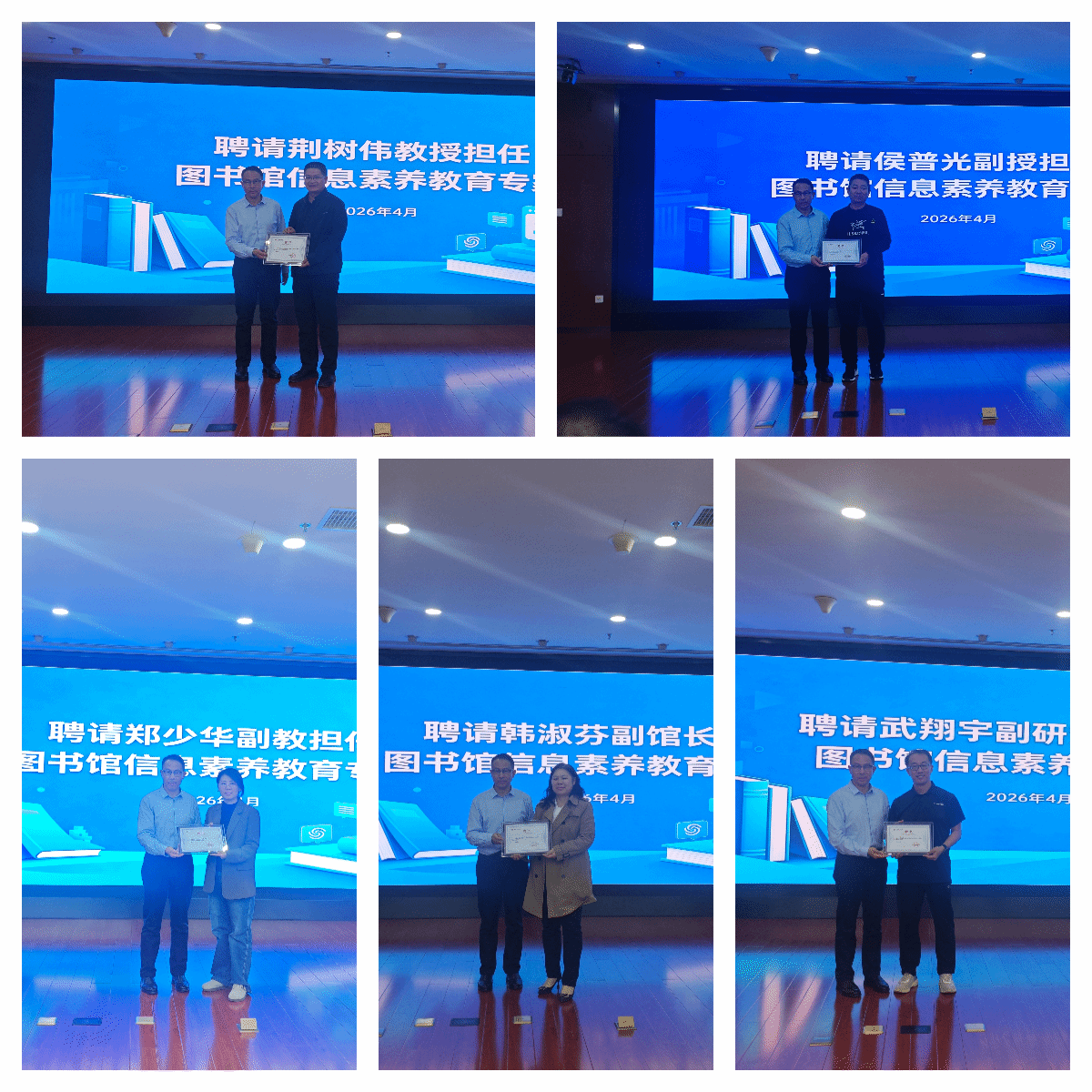 专家点评明方向,表彰聘任启新程。汇报环节结束后,评委老师结合各组选手的现场表现,从专业知识储备、信息检索技巧、文献分析深度、学术写作规范、PPT制作质量及现场展示效果等多个维度,进行了全面细致的点评,并给出针对性的指导建议。随后,图书馆信息素养教育专家聘用仪式在赛场同步举行。肖志超馆长为本次比赛的专家评委逐一颁发聘书,此举为赛事的高质量开展提供了专业保障,也为学校后续信息素养教育工作的深化推进筑牢了人才支撑。