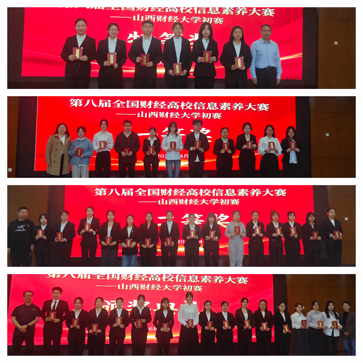 本次大赛严格遵循“线上答题20%+撰写报告35%+展示汇报40%+竞赛风尚分5%”的计分规则,秉持公平公正的评选原则,最终评选出各组别奖项。其中,法学院2023级研究生黄彬峰,会计学院2024级研究生贾珂楠、胡钰雯组成的三原色队斩获研究生组特等奖;经济学院2024级本科生武薇淼、杨张妮与经贸外语学院2025级李雯娜组成的队伍摘得本科生组特等奖。两支特等奖队伍将代表我校,出征5月16、17日在重庆工商大学举办的第八届“搜知杯”全国财经高校信息素养大赛全国总决赛。