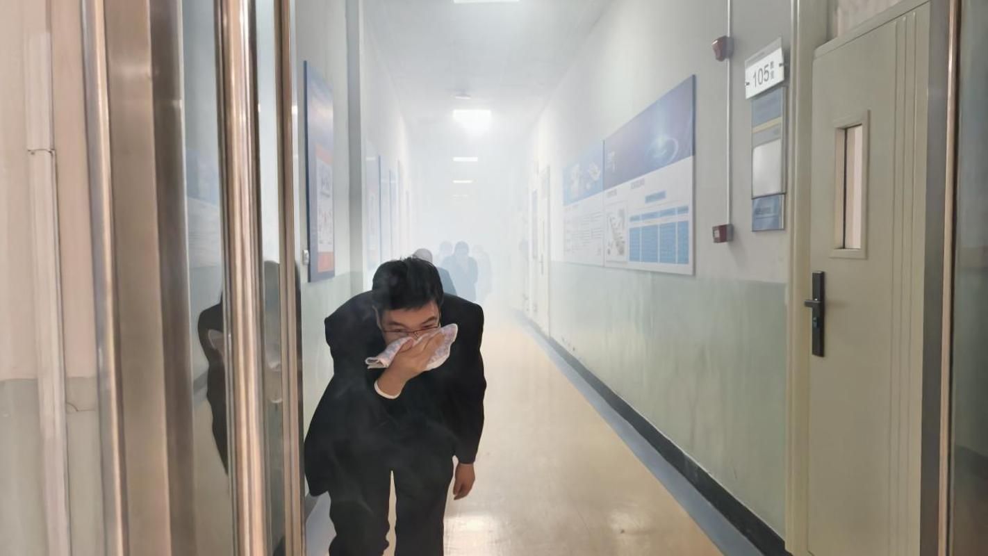专题培训后,随着警报哨声的响起,逃生演练活动正式启动。在现场工作人员的引导下,实验室内全体师生迅速以手肘捂住口鼻,俯身弯腰,依照逃生演练方案预设路线,分成两组快速且有序地从烟雾弹散发的滚滚浓烟中撤离至指定地点,并进行人数清点。全体师生在规定时间内完成了安全撤离,顺利完成本次实验室消防安全应急疏散演练。
