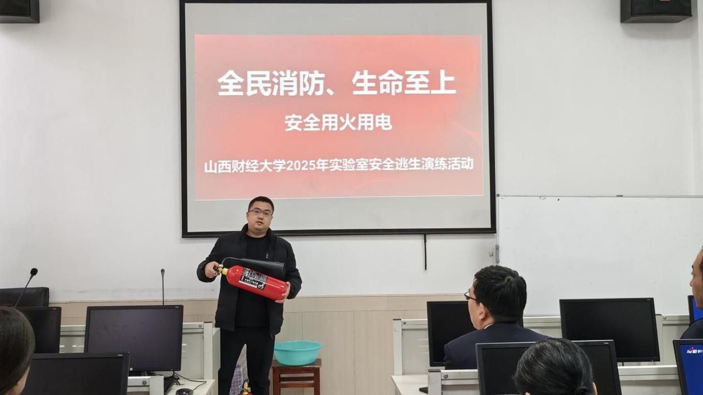 本次活动邀请学校保卫部樊玺,针对学校实验教学相关人员及学生代表开展实验室用电安全、灭火器使用以及应急避险逃生疏散演练进行专题培训。