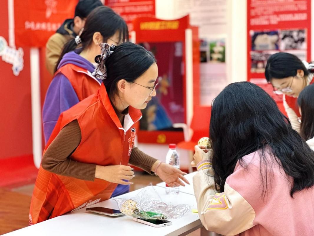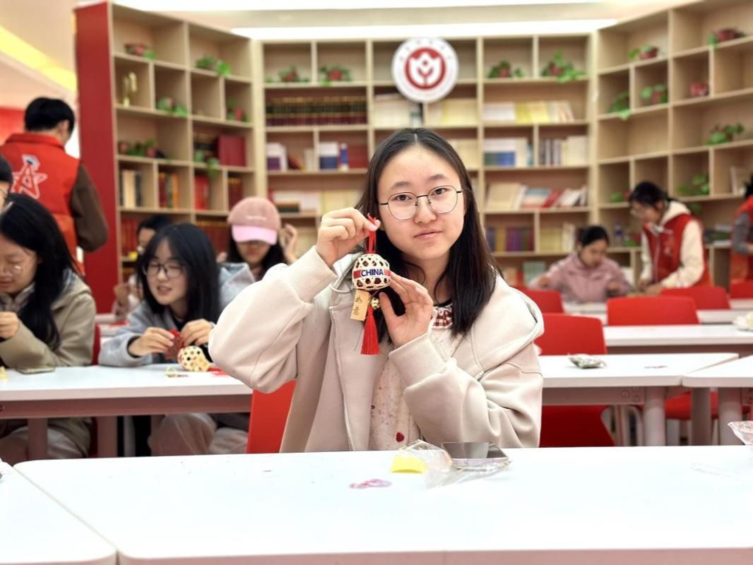 活动伊始,学生们在志愿者指导下认真学习竹编技巧,从选材、编织到填充香料、封口装饰,注入红色文化,每一步都凝聚着专注与用心。活动现场气氛温馨而庄重,大家一边交流编织心得,一边分享对红色精神的理解。有学生表示:“亲手编织香囊,不仅锻炼了动手能力,更让我感受到革命年代人民朴素而坚定的信仰。我们应当珍惜今天的美好生活,传承这份精神力量。”