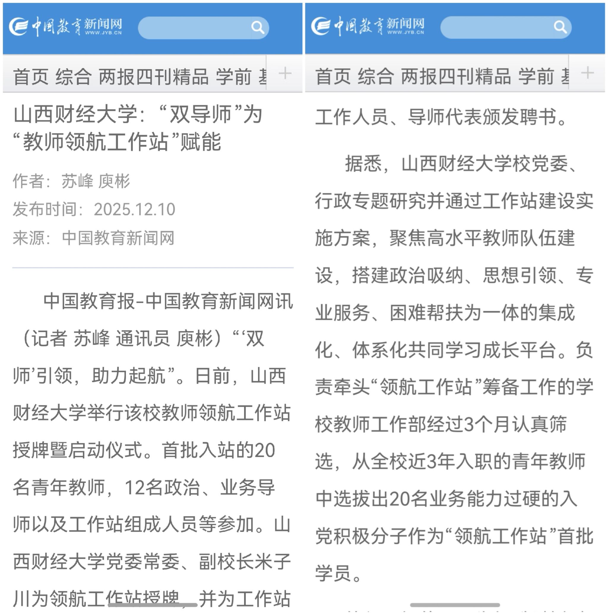 山西财经大学:“双导师”为“教师领航工作站”赋能