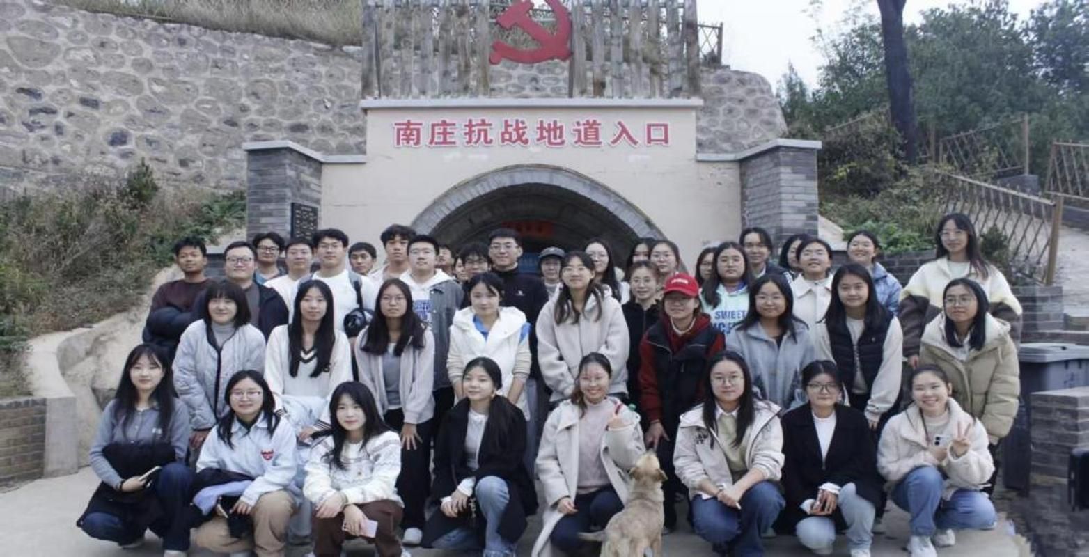 下午14时,队伍抵达南庄地道战遗址。该遗址全长约1.4公里,设有隐蔽洞、作战洞、运输洞和生活洞四大功能区,是抗日战争时期群众智慧与军民协作的典型体现。1942年,日军实施“扫荡”期间,南庄村群众在八路军指导下利用黄土层地质特点开挖地道,逐步形成可攻可守、互联互通的地下防御体系。师生实地进入地道,亲身体验狭窄通道、隐蔽射击口、通风孔及储物窑洞等结构设计,直观感受抗战时期人民群众因地制宜、顽强抗敌的斗争智慧。